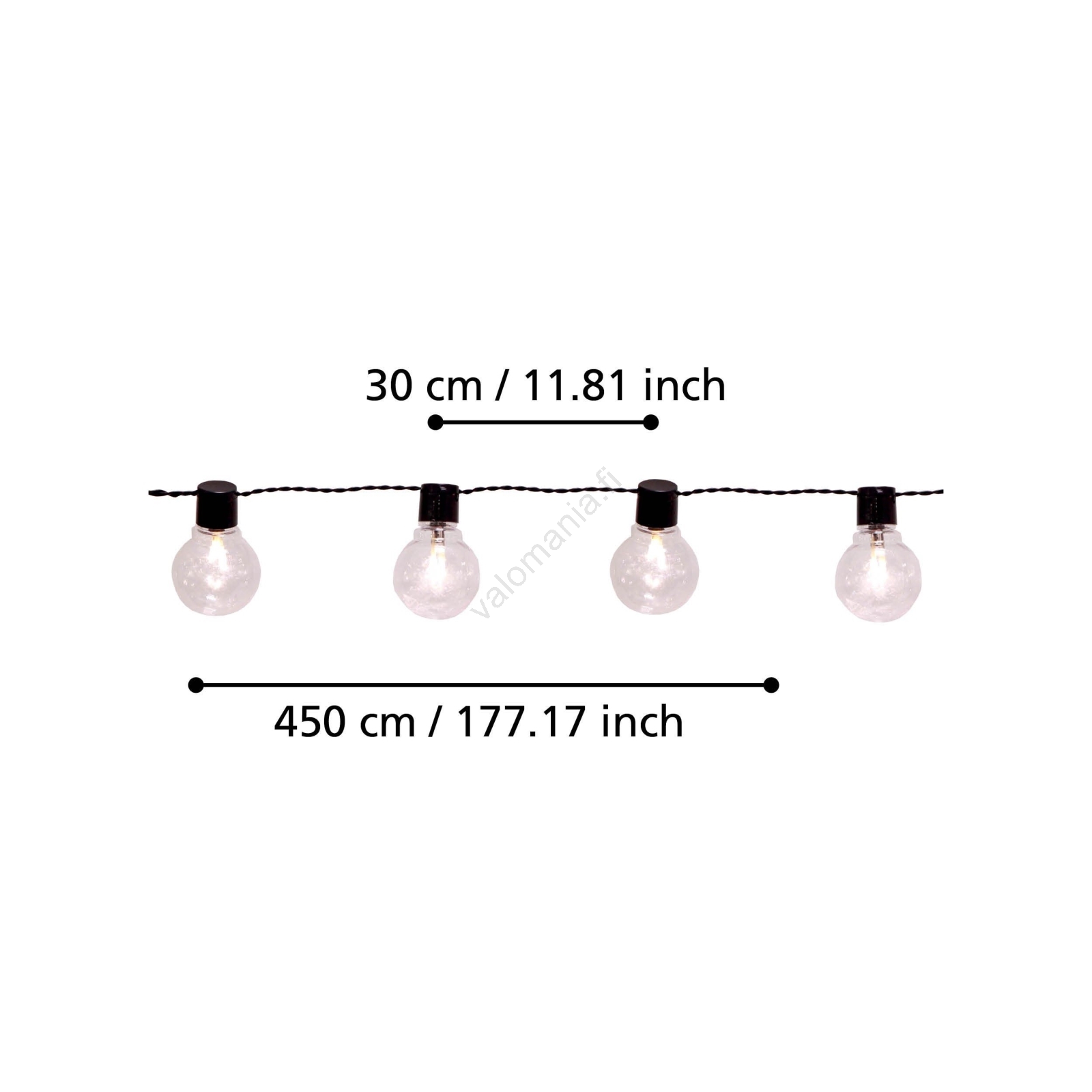 Eglo 900213 - LED Koristeketju ulkokäyttöön PARTAJ 16xLED/0,064W/24V IP44 musta | Valomania