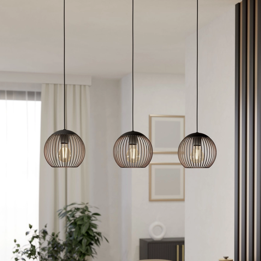 Eglo 901869 - ALMANZORA riippuvalaisin kaapelilla 3xE27/60W/230V musta | Valomania