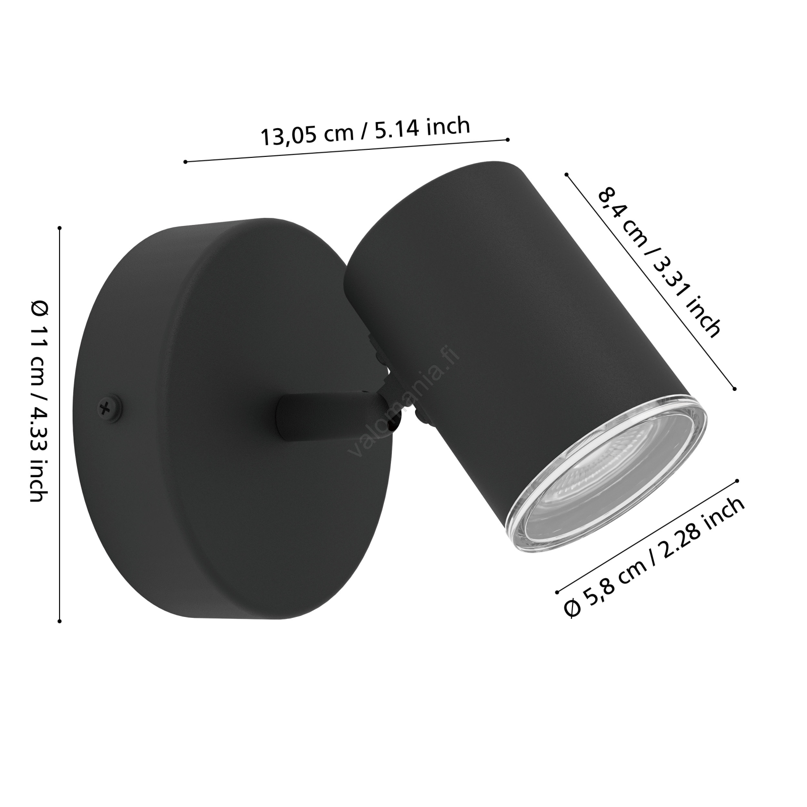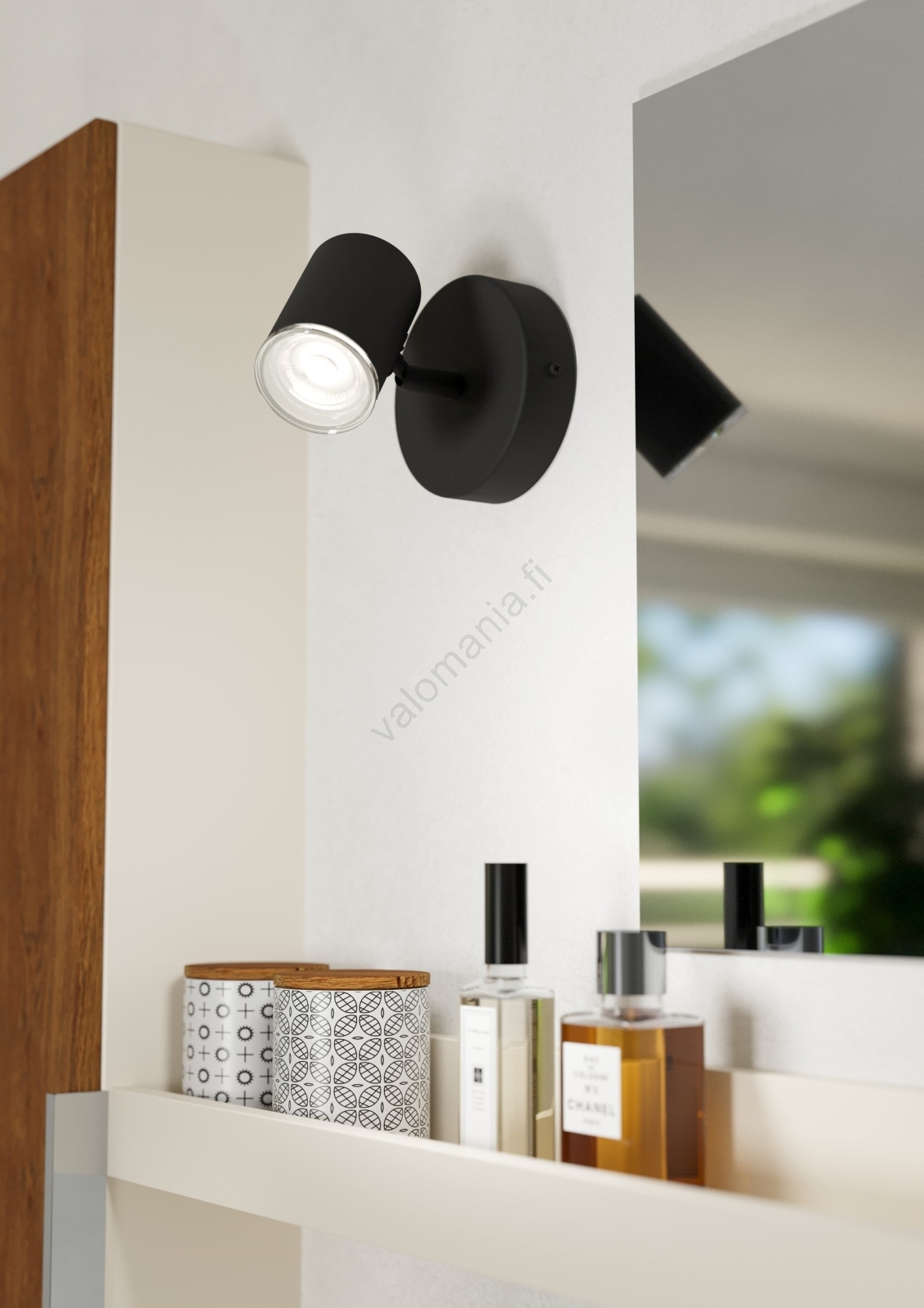 Eglo 901964 - CONSUMA kylpyhuoneen seinäspotti 1xGU10/5W/230V IP44 musta | Valomania