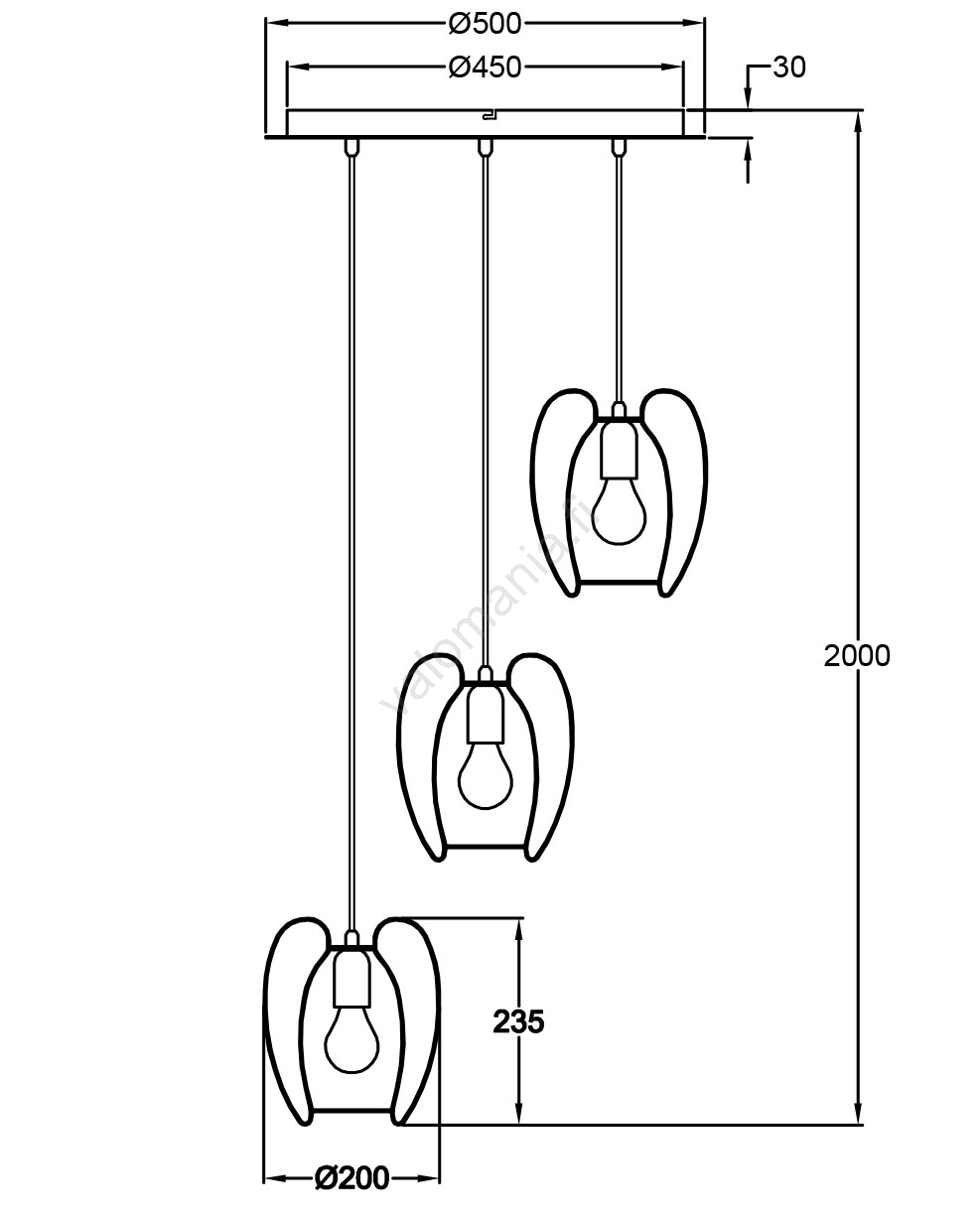 • Fabas Luce 3677-47-101 - Kattokruunu johdossa CAMP 3xE27/40W/230V musta