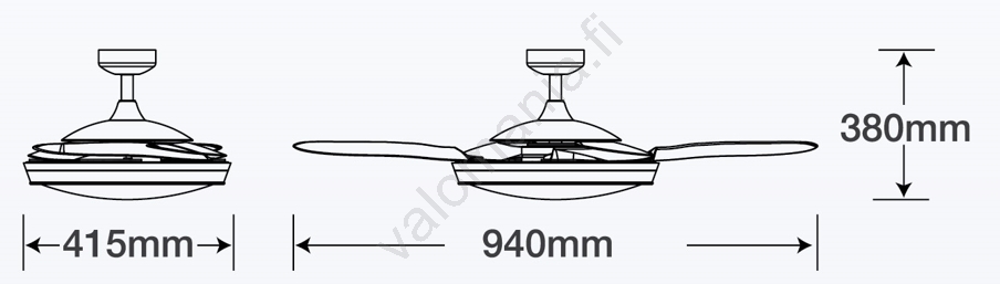 • Lavat voivat piiloutua ylhäältä päin, jolloin tuuletin muuttuu  >vain valaisimeksi.