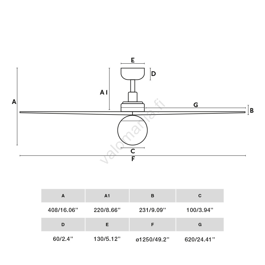 • DC-moottorissa on 6 säädettävää nopeutta, joiden tehonkulutus on 5-7-11-17-24-35 W ja kierrosnopeus 90-119-144-170-192-220 rpm nopeudesta riippuen.