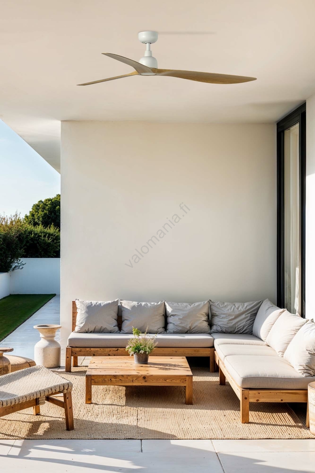 • FARO 34363 - Kattotuuletin OUTWOOD L valkoinen halkaisija 150 cm IP44 + kauko-ohjaus
