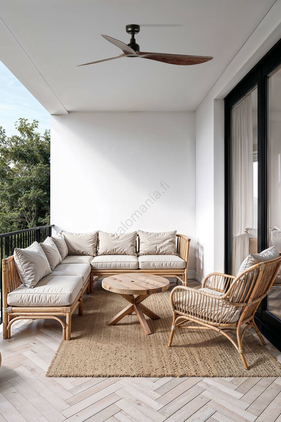 • FARO 34363 - Kattotuuletin OUTWOOD L valkoinen halkaisija 150 cm IP44 + kauko-ohjaus
