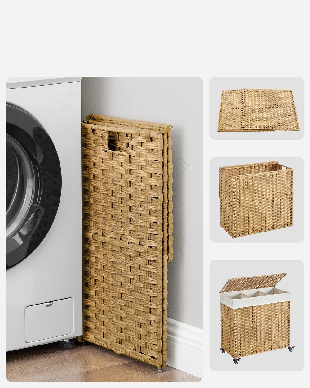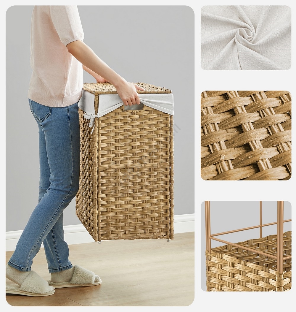 • Huolellisesti valmistettu, käsin punottu keinorottinkinen pyykkikori on täydellinen ratkaisu likapyykin piilottamiseen ja kodin siisteyden ylläpitämiseen.