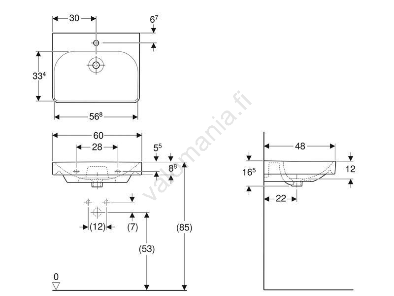 Geberit 500.229.01.1 - Seinään asennettava pesuallas Smyle Square 60x48 cm keramiikka/valkoinen | Va