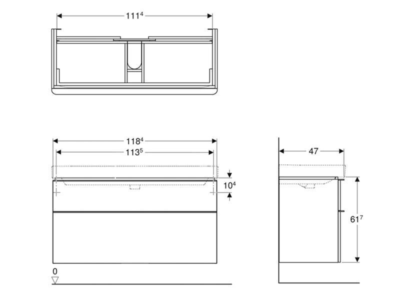• Geberit 500.356.00.1 - Kylpyhuonekaappi kaksialtaisen pesualtaan alle Smyle Square 61,7x118,4 cm valkoinen