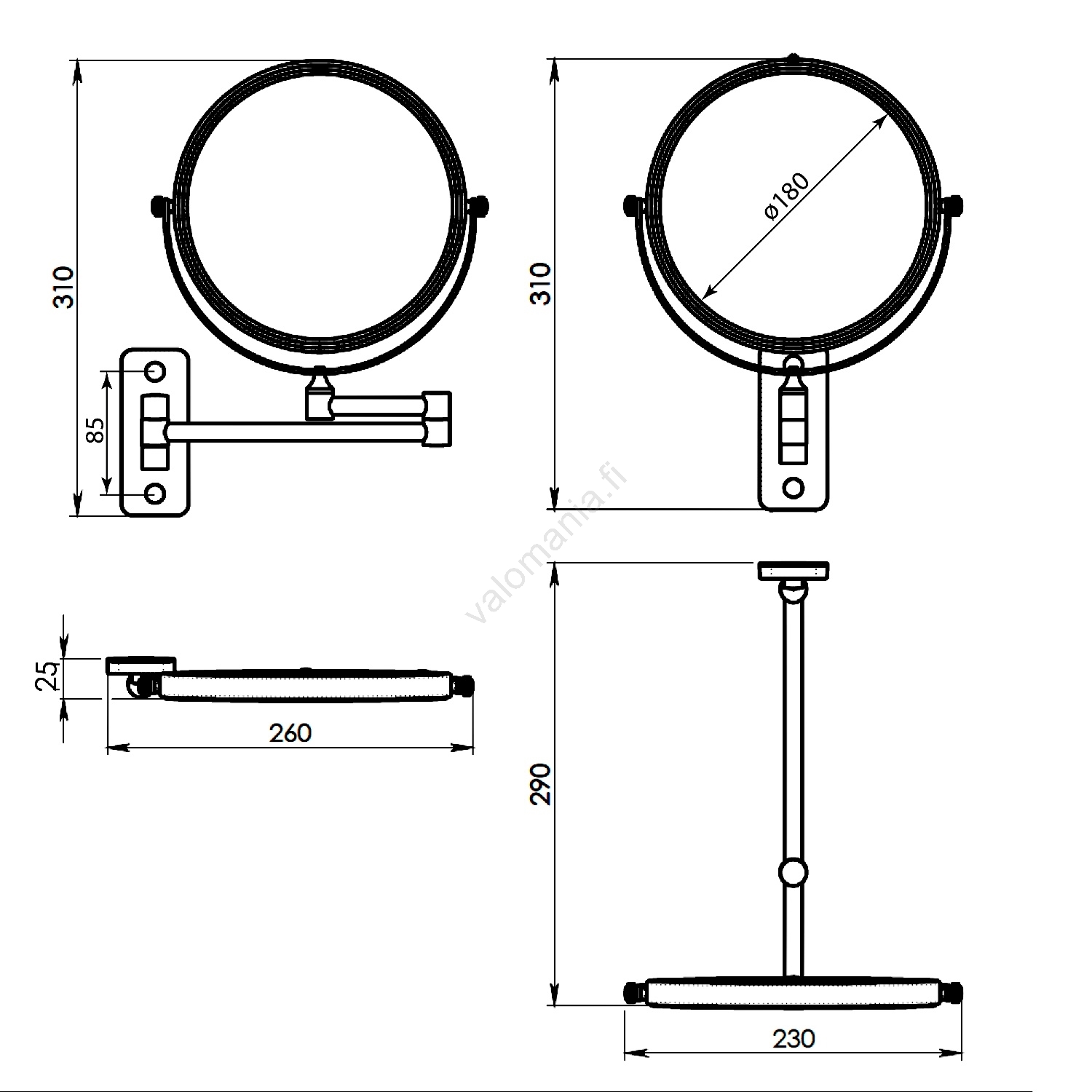 • Kylpyhuoneen päivittäiseen käyttöön tarkoitettu meikkipeili.