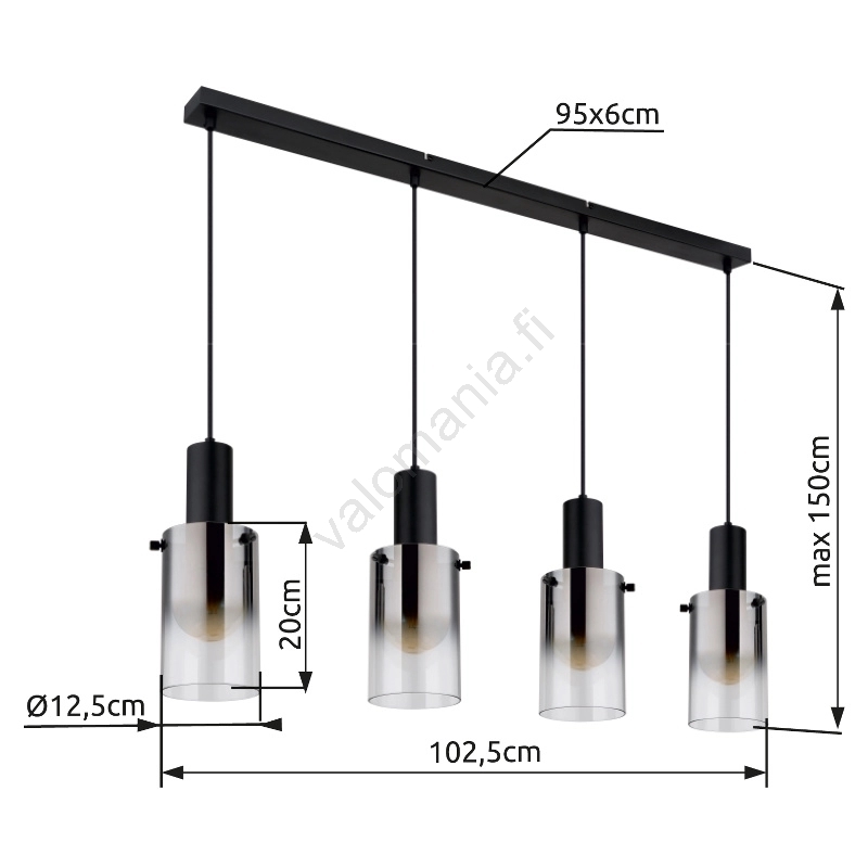 Globo - Kattokruunu johdossa 4xE27/40W/230V musta merkitsee kaunista ja toimivaa muotoilua.  Valoon sopii polttimo, jossa on E27-kanta. Täältä voit ostaa myös muita lamppuja edulliseen hintaan. Mielenkiintoinen lisä kotiisi.