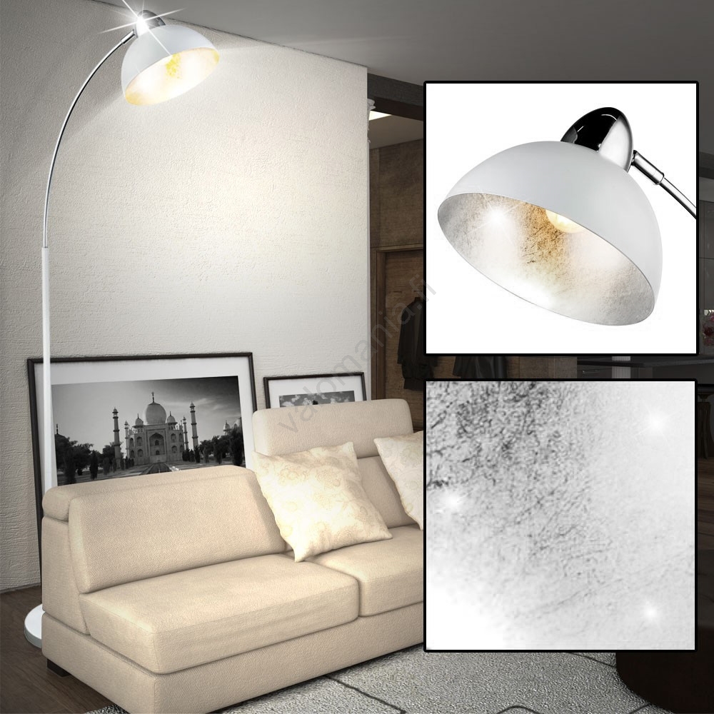 • Yhdistelmä valkoista jalkaa ja kromattua varjostinta.