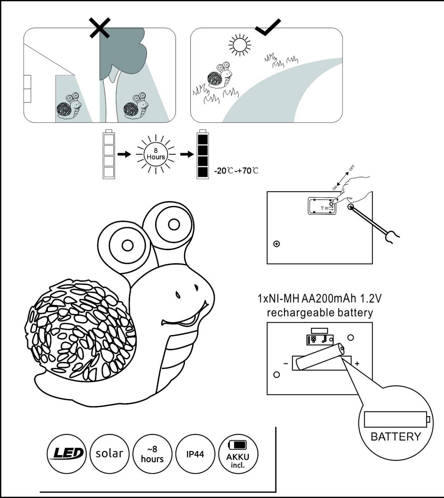 Globo 33205 - LED aurinkokennovalo SOLAR 2xLED/0,06W/3V IP44 etana | Valomania