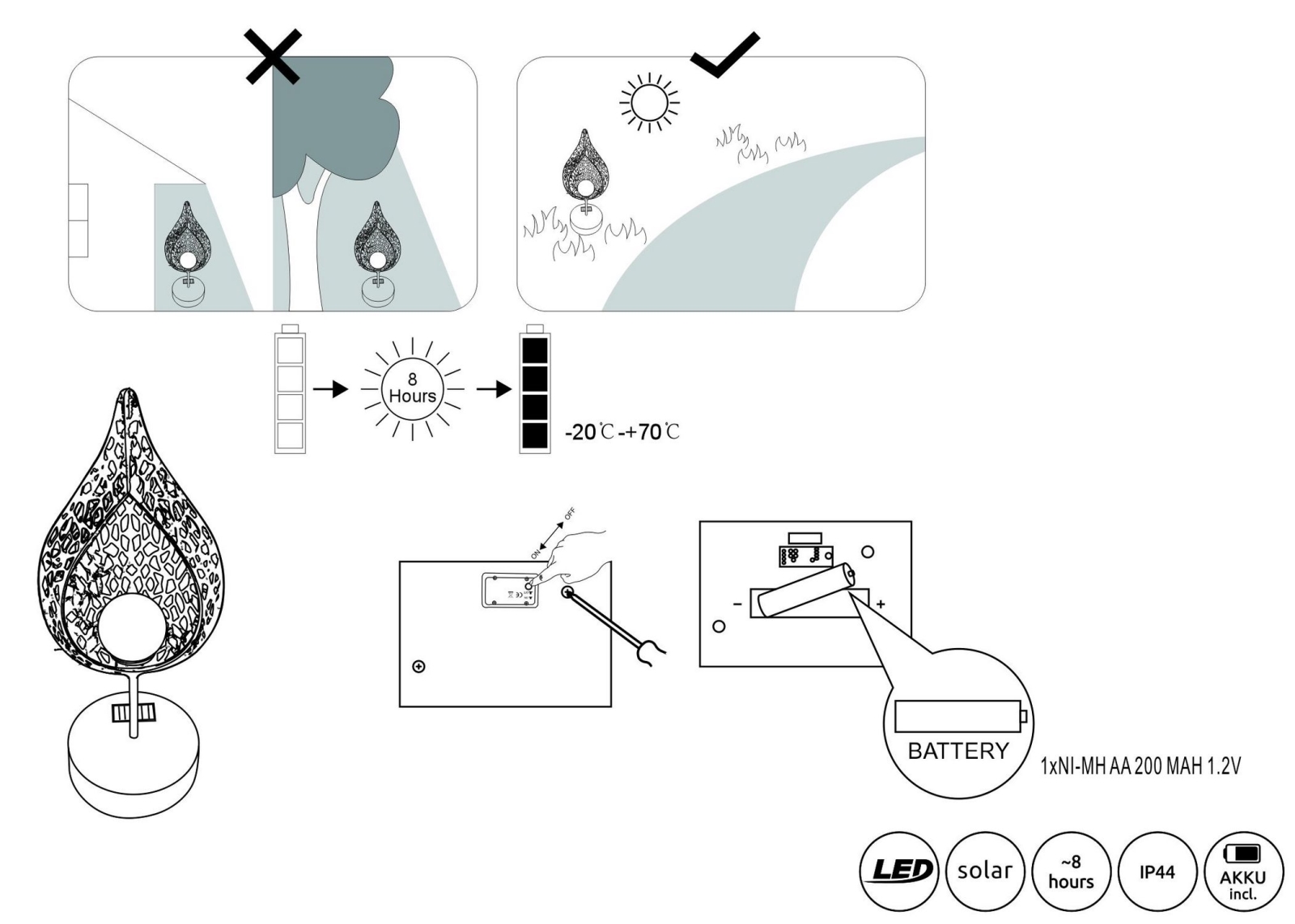 Globo 33528 - LED aurinkokennovalo SOLAR LED/0,06W/3V IP44 | Valomania
