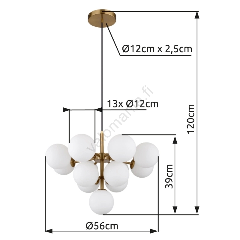 Globo - Kattokruunu johdossa 13xG9/5W/230V halkaisija 56 cm kulta merkitsee kaunista ja toimivaa muotoilua.  Valoon sopii polttimo, jossa on G9-kanta. Täältä voit ostaa myös muita lamppuja edulliseen hintaan. Mielenkiintoinen lisä kotiisi.