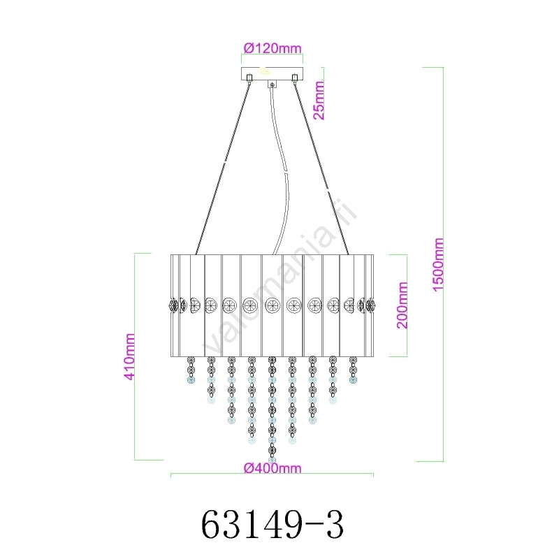 Globo - Kattokruunu johdossa 3xE27/40W/230V halkaisija 40 cm merkitsee kaunista ja toimivaa muotoilua.  Valoon sopii polttimo, jossa on E27-kanta. Täältä voit ostaa myös muita lamppuja edulliseen hintaan. Mielenkiintoinen lisä kotiisi.