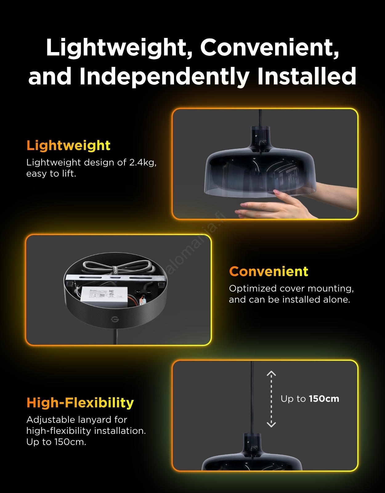 • Moderni kattovalaisin RGBICWW-tekniikalla — tarjoaa 16 miljoonaa väriä ja täysin säädettävän valkoisen valon lämpimästä viileään.