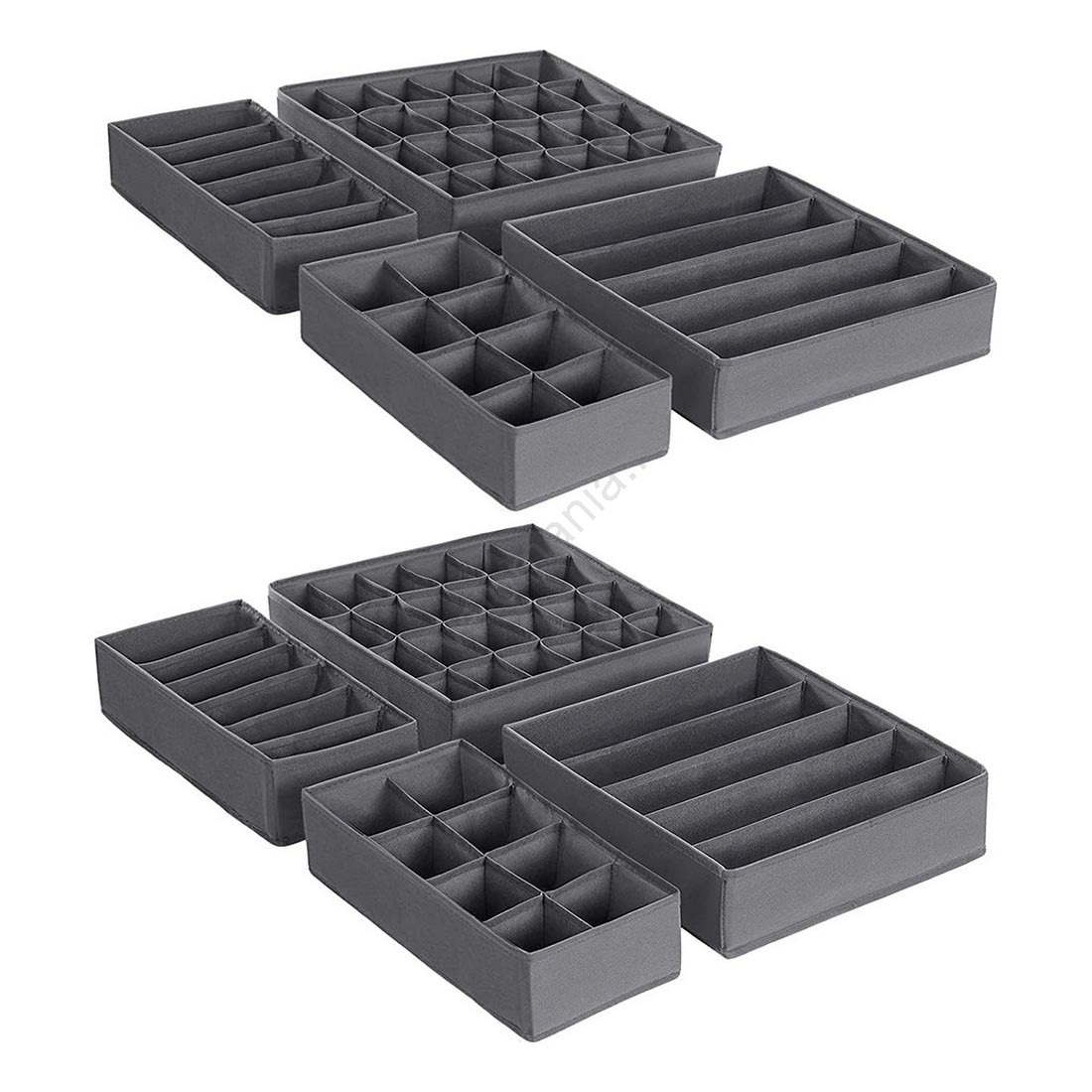 • 8-osainen vetolaatikkoihin tarkoitettu alusvaatejärjestäjäsarja taitettavalla muotoilulla ja monikäyttöisyydellä; sopii myös meikeille, askartelutarvikkeille ja muille tavaroille.
