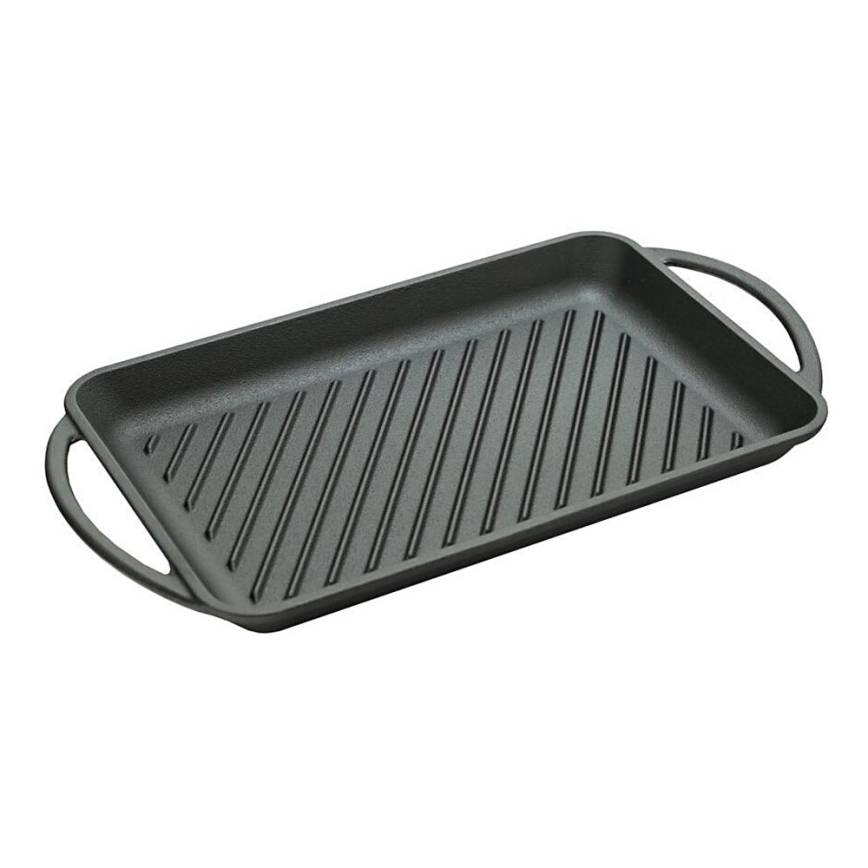 • Suorakaiteen muotoinen valurautainen grillipannu, jonka mitat ovat 33 x 21,5 cm.