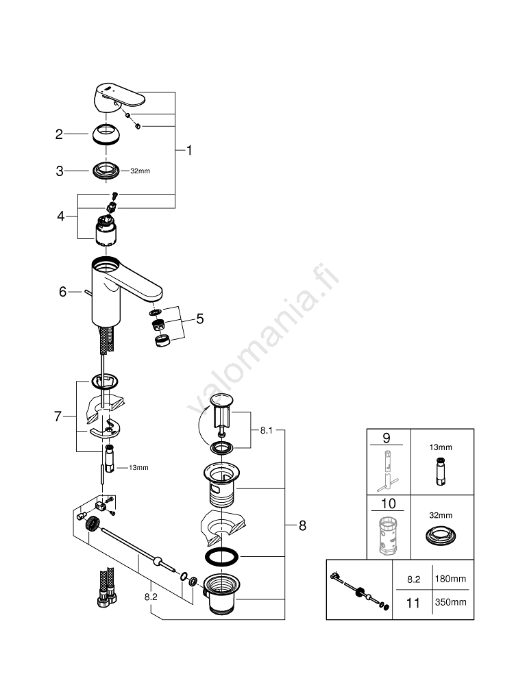 GROHE 2339600E -Pesuallashana EUROSMART COSMOPOLITAN DN 15 koko M kromi | Valomania
