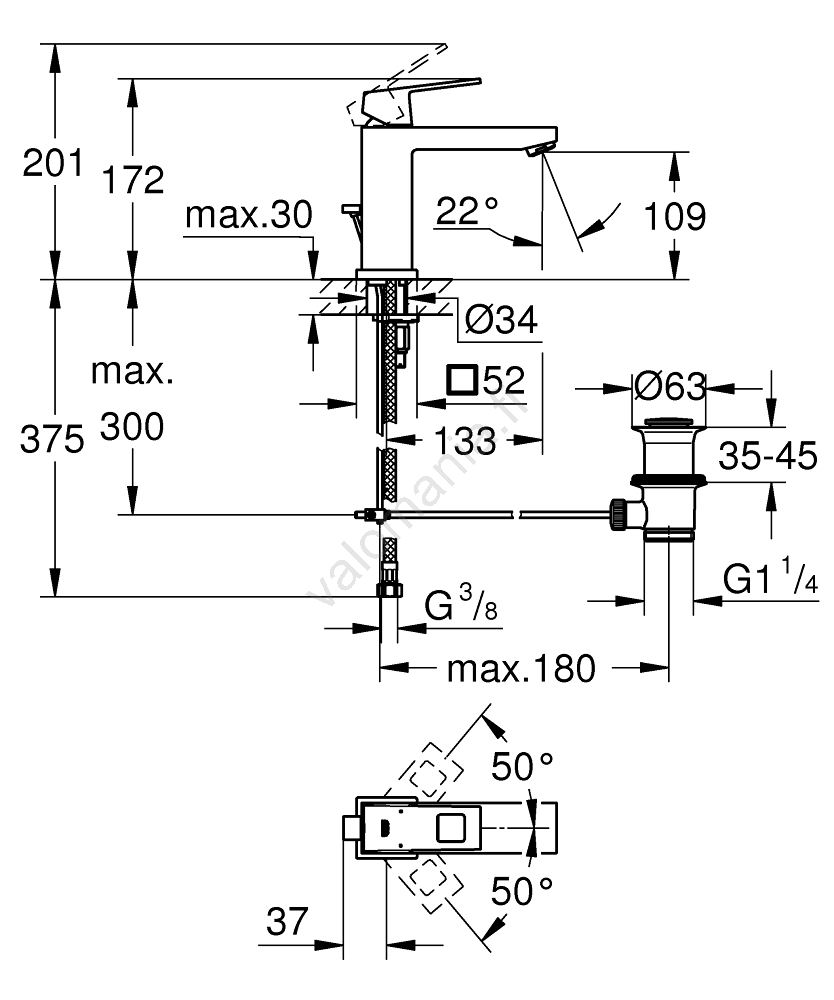 • Yksikahvainen GROHE Eurocube -pesuallashana poisto-osalla helppoon käyttöön.