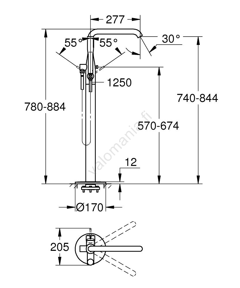 • Yksikahvainen lattiakiinnitteinen ammehana, ihanteellinen vapaasti seisoviin ammeisiin.