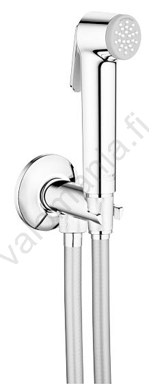 • Sarjaan sisältyy itse sulkeutuva kulmaventtiili, jossa on integroitu suihkuteline.