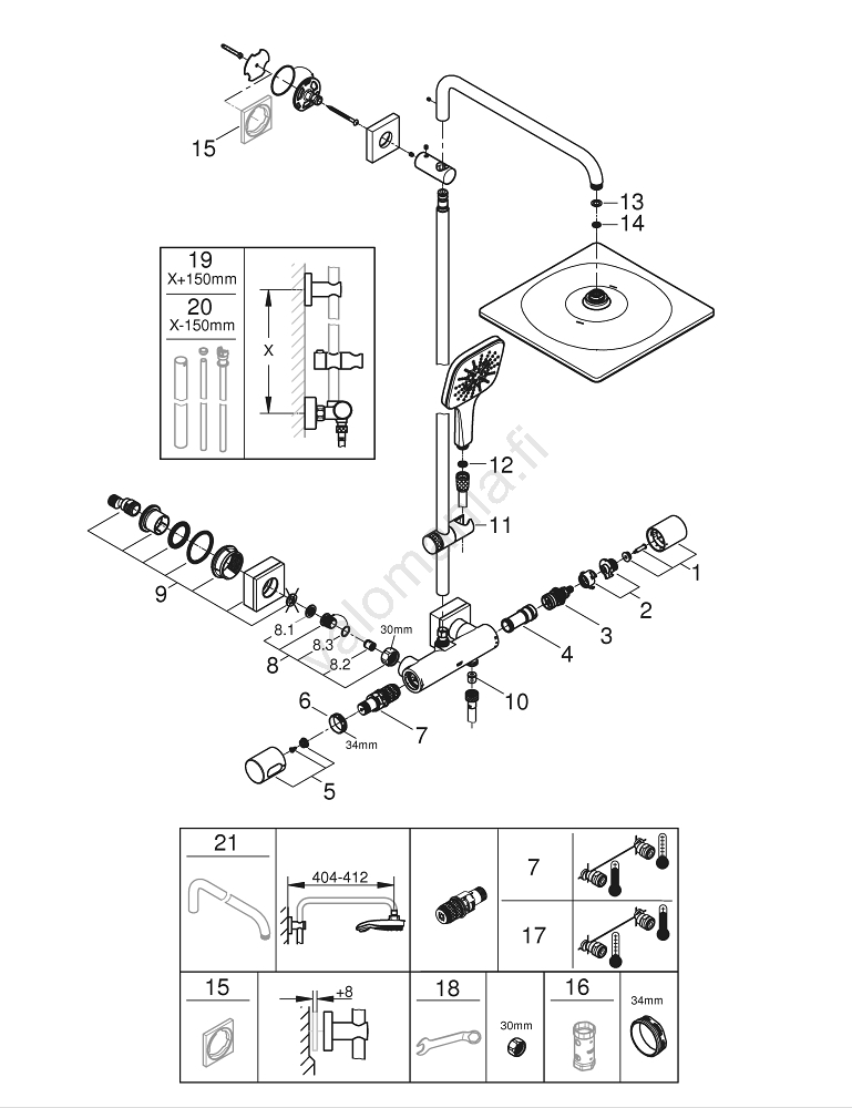 Brändit, Grohe, Hanat, Kylpyhuone, Suihkuhanat, Suihkusarjat, Suihkusetit, Termostaattiset hanat