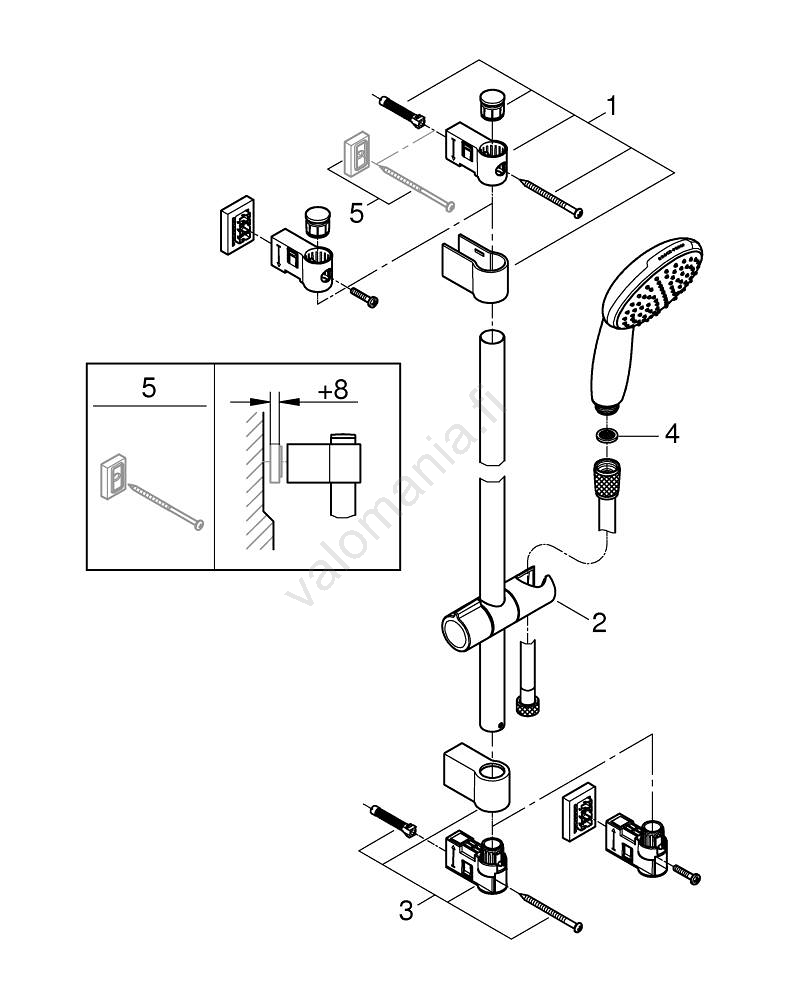 • GROHE FastFixation -järjestelmä säädettävällä yläpidikkeellä mahdollistaa helpon asennuksen olemassa oleviin aukkoihin.