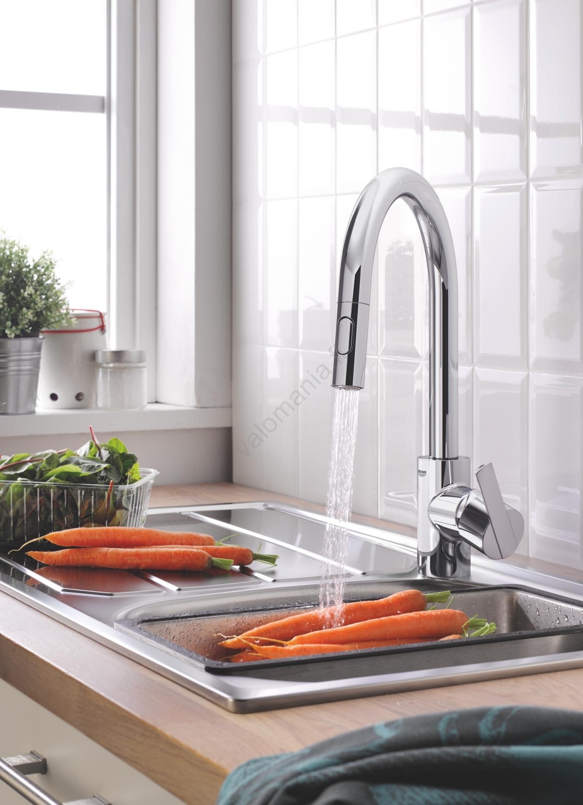 • GROHE EasyDock -teknologia varmistaa, että ulosvedettävä suihkupää asettuu helposti ja sulavasti takaisin lähtöasentoon.