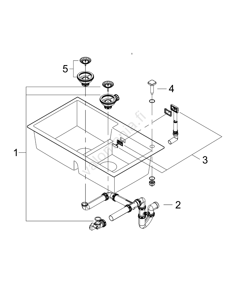 • Toimitukseen kuuluu asennussarja, poistojärjestelmä ja roskasihti.
