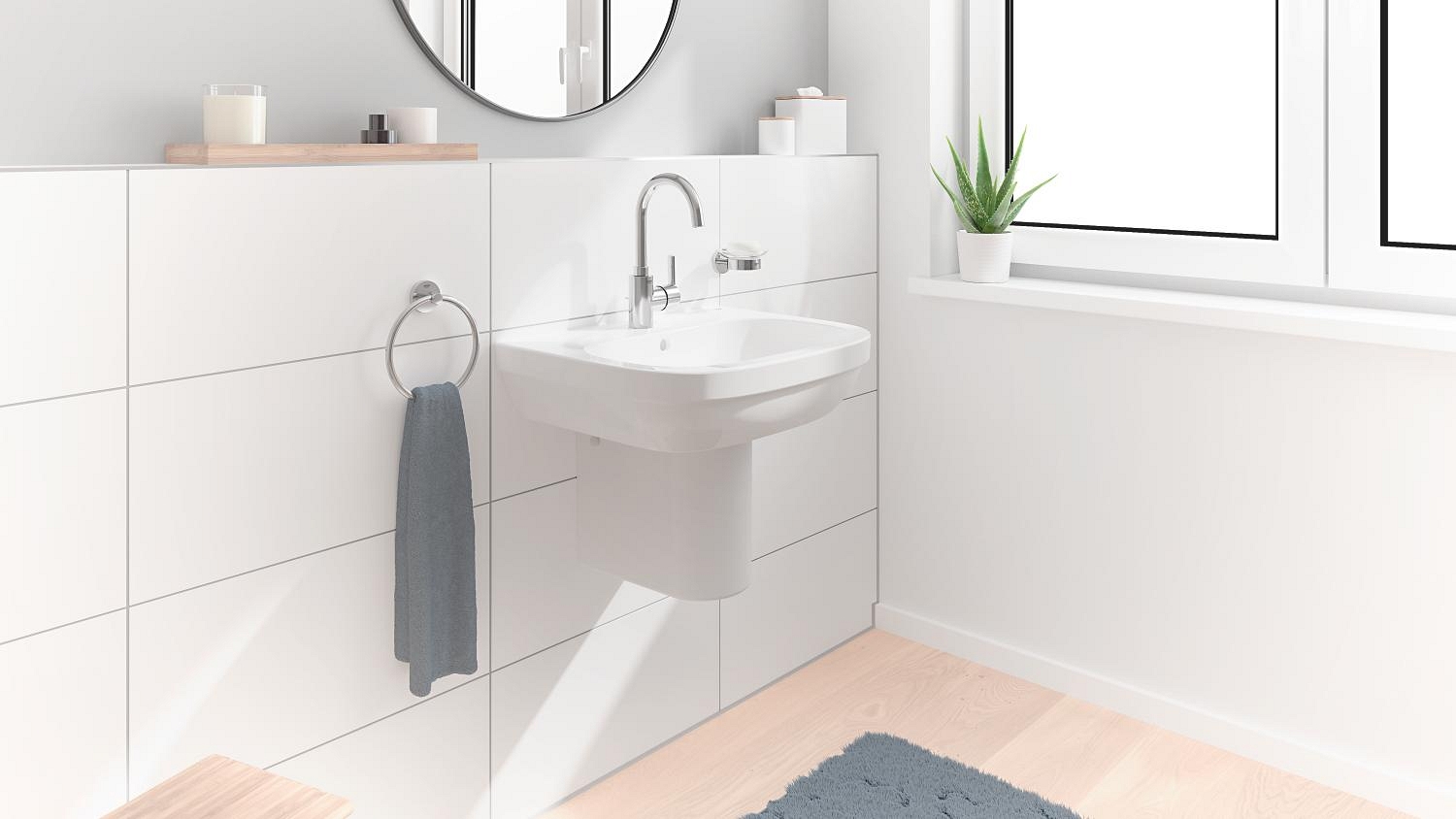 • GROHE Feel -pesuallashana, koko L, modernilla muotoilulla ja korkealla kääntyvällä juoksuputkella.