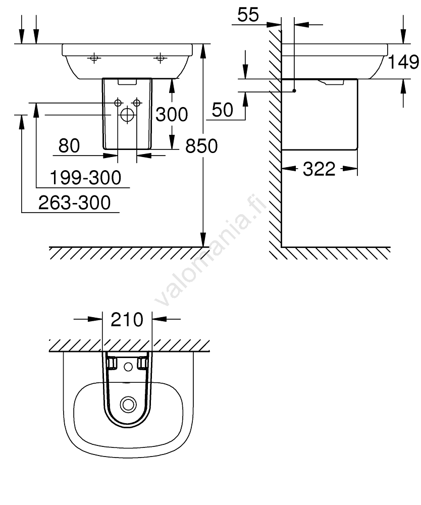 • Mitat: leveys 210 mm, syvyys 300 mm, korkeus 322 mm; sopii erilaisille pesualtaille.