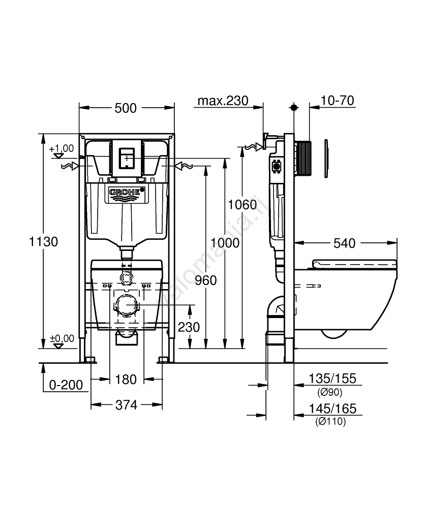 • Sisältää Rapid SL -asennusyksikön WC:lle (38 528 001), korkeus 1,13 m.