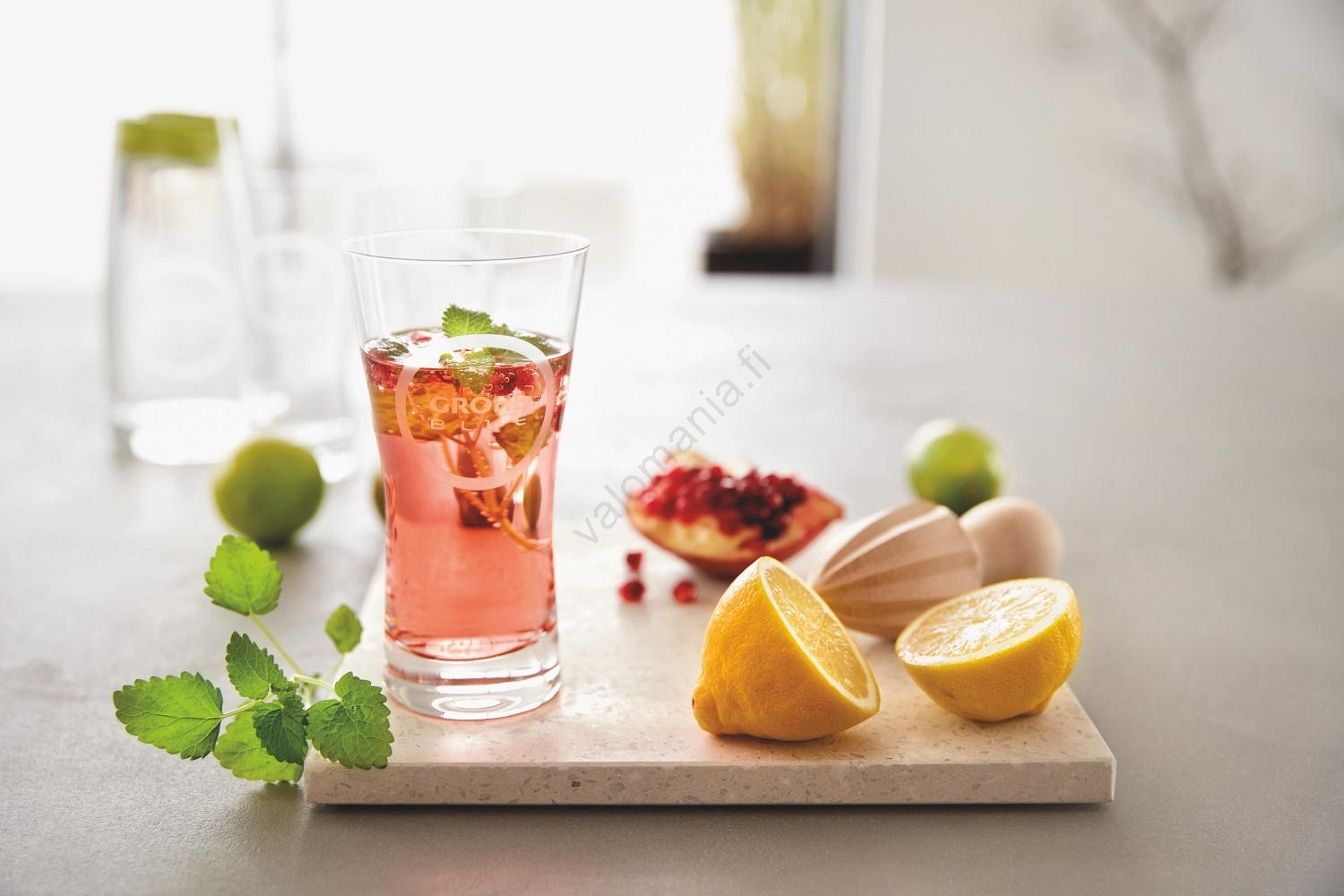 • Voidaan yhdistää litrainen lasinen GROHE Blue -karahviin (40405001) tarjoilemaan suurempaa vesimäärää.