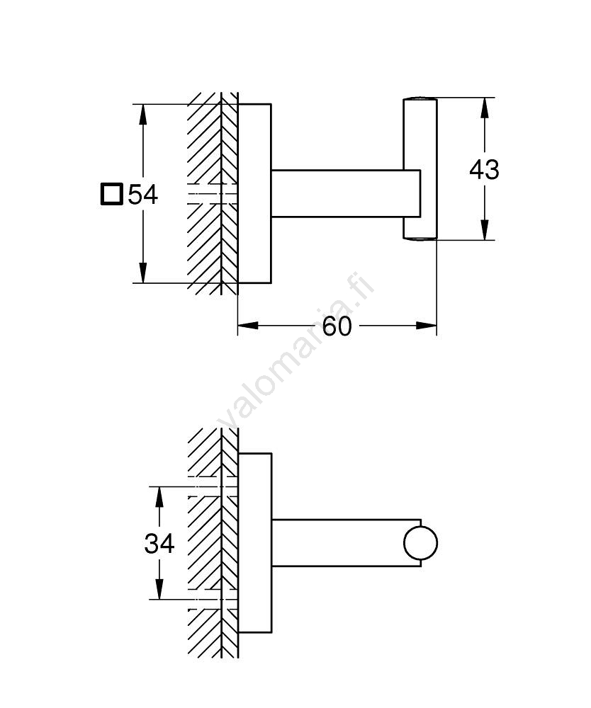 • Mitat: 54 mm x 60 mm (korkeus x syvyys).