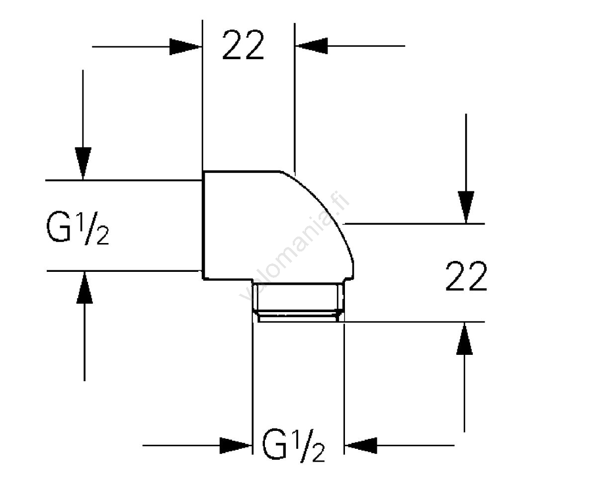 • Suihkun kulma-adapteri 1/2" x 1/2" kierreliitännällä helppoon asennukseen.