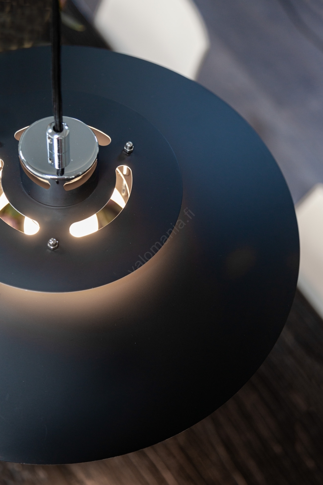 Halo Design 990259 - Vaijerilla ripustettava kattovalaisin SORUP 1xE27/40W/230V halkaisija 40 cm musta/kiiltävä kromi merkitsee kaunista ja toimivaa muotoilua.  Valoon sopii polttimo, jossa on E27-kanta. Täältä voit ostaa myös muita lamppuja edulliseen hintaan. Mielenkiintoinen lisä kotiisi.