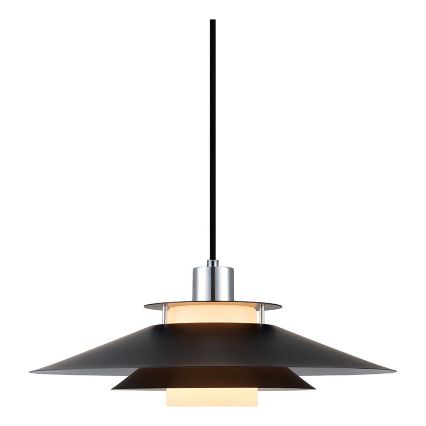 Halo Design 990808 - Vaijerikiinnitteinen riippuvalaisin RIVOLI 1xE27/40W/230V, halkaisija 40 cm, musta/kiiltävä kromi merkitsee kaunista ja toimivaa muotoilua.  Valoon sopii polttimo, jossa on E27-kanta. Täältä voit ostaa myös muita lamppuja edulliseen hintaan. Mielenkiintoinen lisä kotiisi.