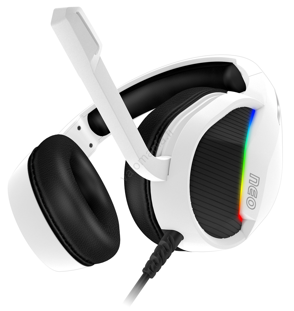 • Ammattimaiset NEO-pelikuulokkeet taitettavalla mikrofonilla ja valaistuksella tietokonepelaajille.