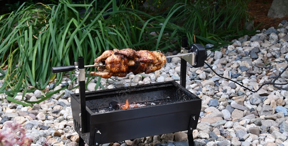 • Hiiligrilli, jossa on tukeva BARBECUE-rakenne ja moottori ruoan kääntämistä varten.