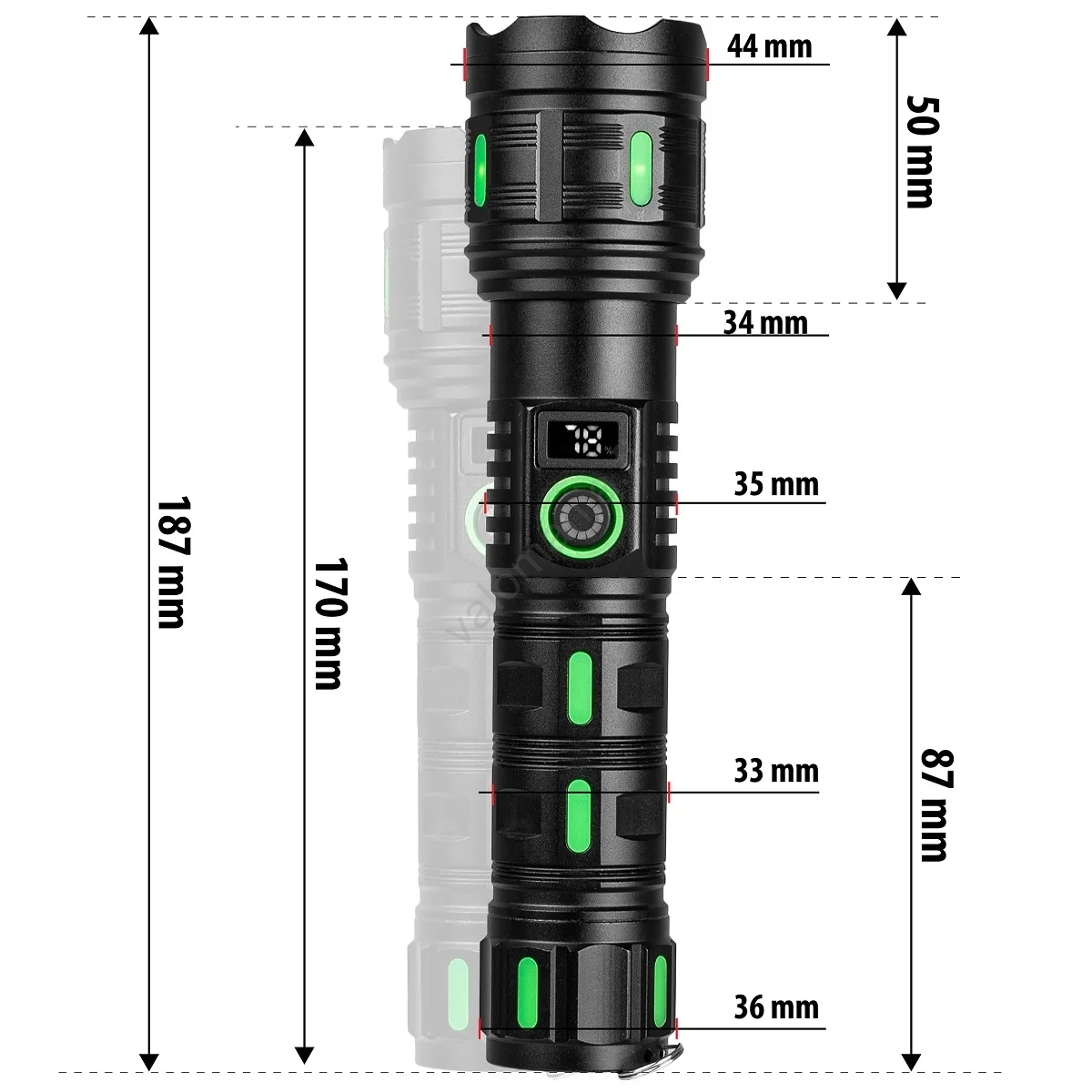 Universaali ja tehokas taskulamppu vaativille käyttäjille, jotka arvostavat luotettavuutta, korkeaa valotehoa ja pitkää käyttöikää. Kestävän rakenteen ja nykyaikaisen LED-tekniikan ansiosta se soveltuu erinomaisesti päivittäiseen käyttöön ja äärimmäisiin olosuhteisiin. Sopii ulkoiluun, työhön, metsästykseen tai taktiseen käyttöön.