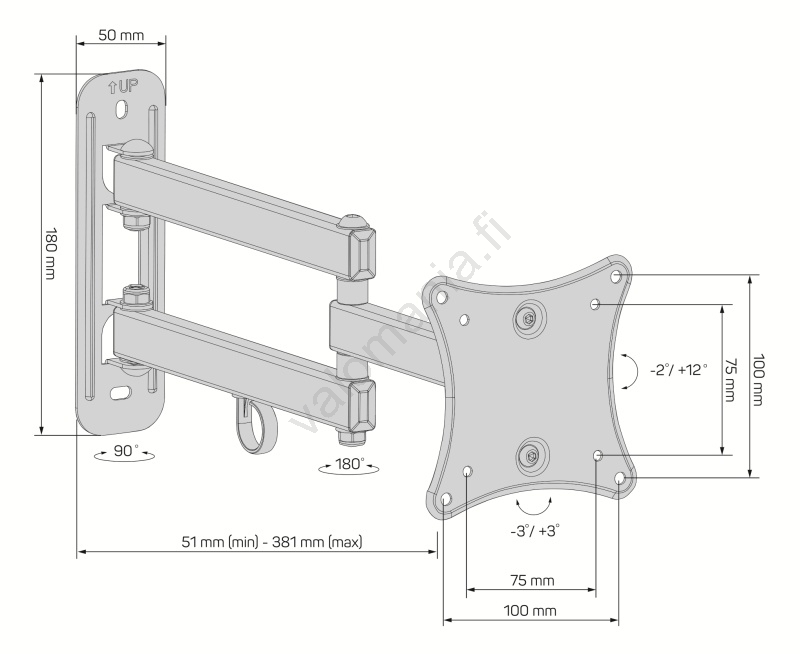 • Täydellinen lista tuetuista VESA-kiinnitysväleistä: 75 x 75 / 100 x 100.