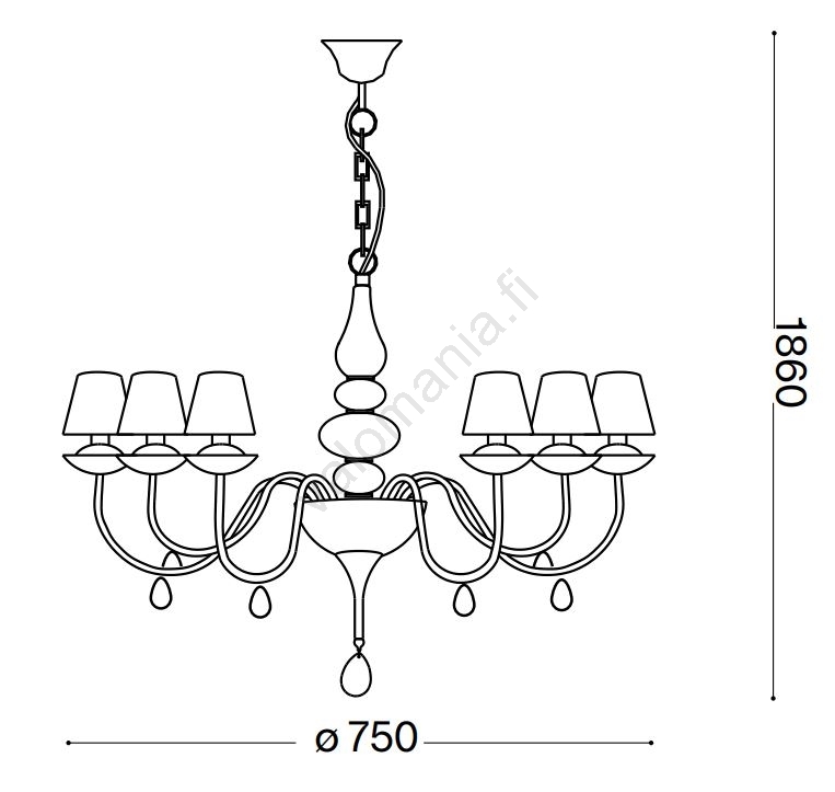• Ideal Lux - Kattokruunu ketjussa BLANCHE 6xE14/40W/230V halkaisija 75 cm valkoinen