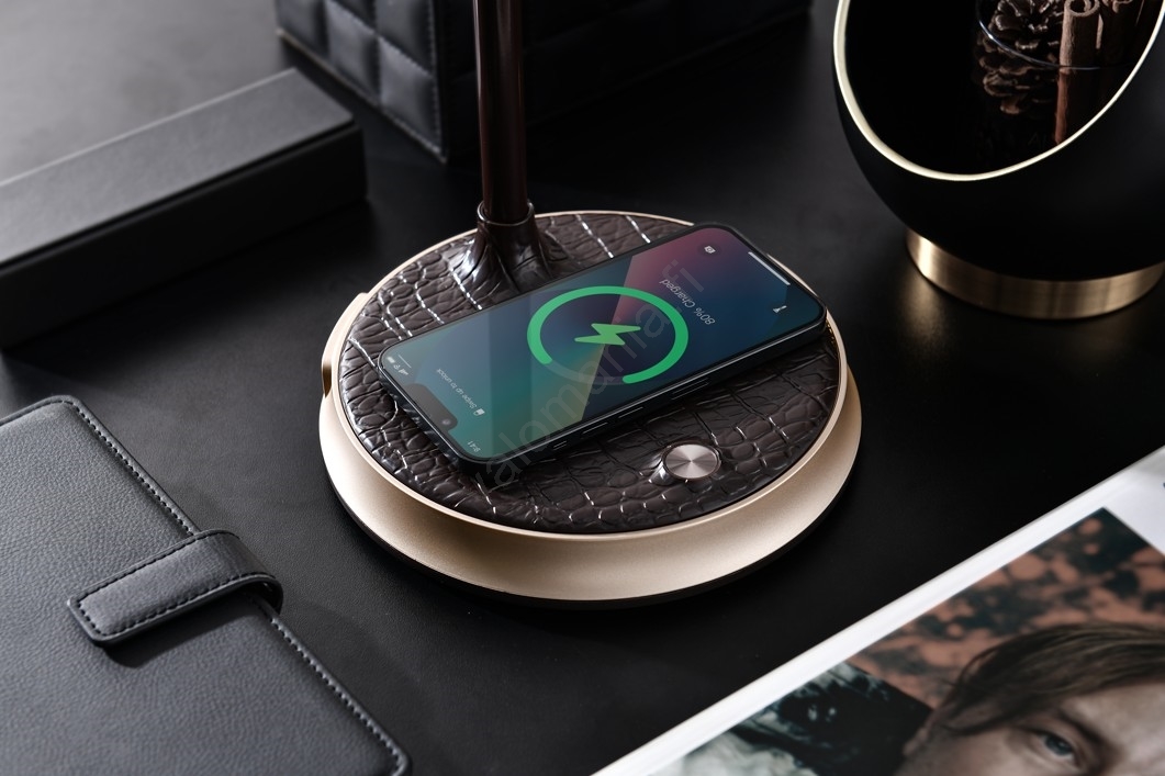 • LED himmennettävä pöytävalaisin langattomalla latauksella FINCH LED/9W/12/230V ruskea/kulta