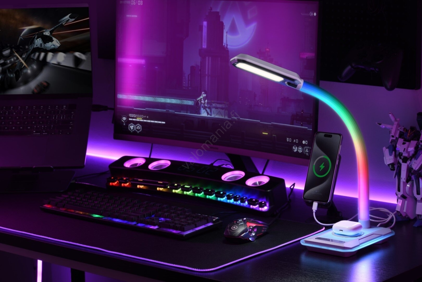 • LED RGBW Himmennettävä pöytävalaisin kanssa Qi lataus 30W/230V 3000K/4000K/5000K valkoinen
