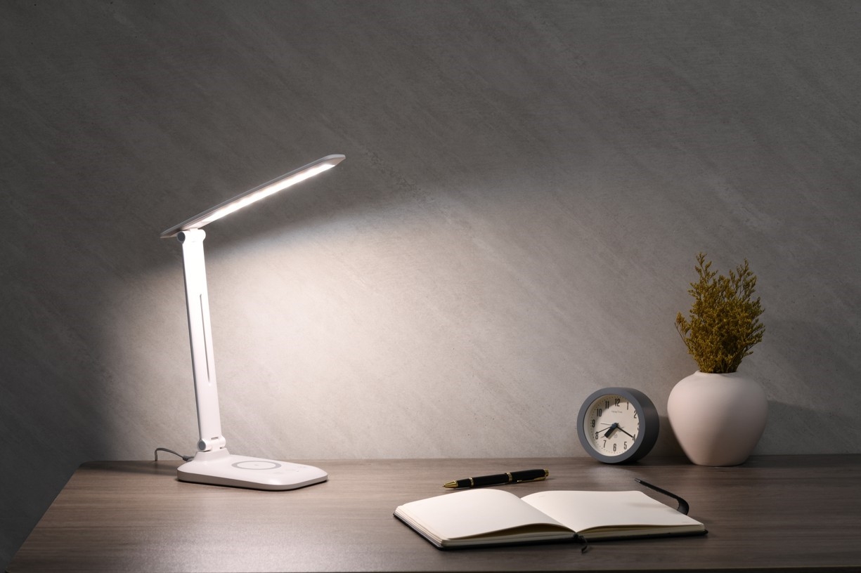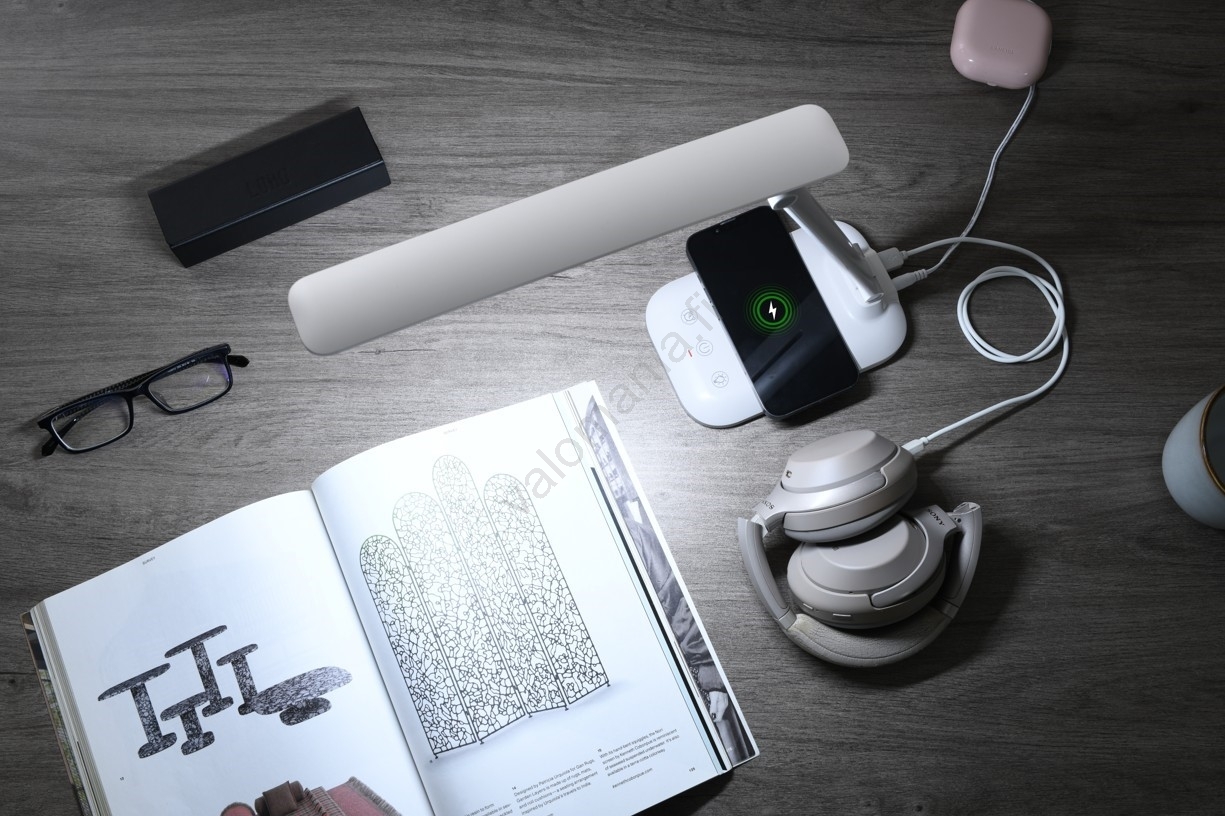 • Himennettävä LED-pöytävalaisin langattomalla Qi-latauksella ja USB-liitännällä LUMI LED/7W/230V valkoinen