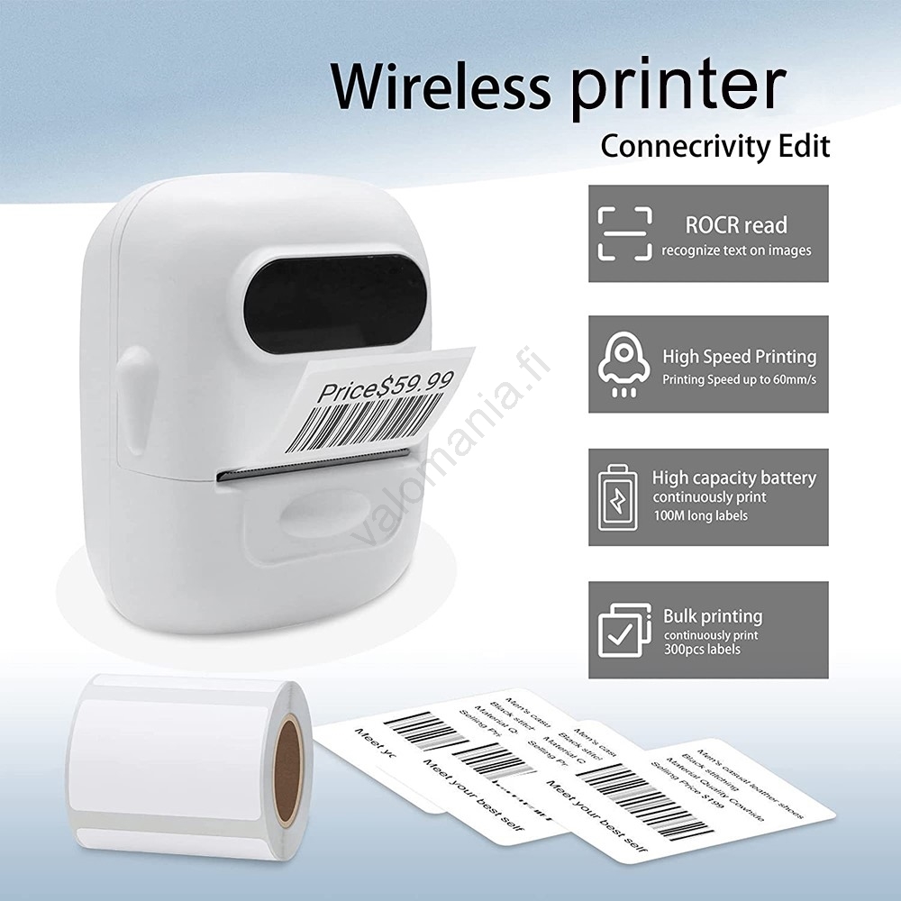 • Kätevä taskukokoinen tarratulostin sopii pienyrityksille, organisaatioille, toimistoille ja myös kotitalouksiin – täydellinen lahja perheelle ja ystäville.