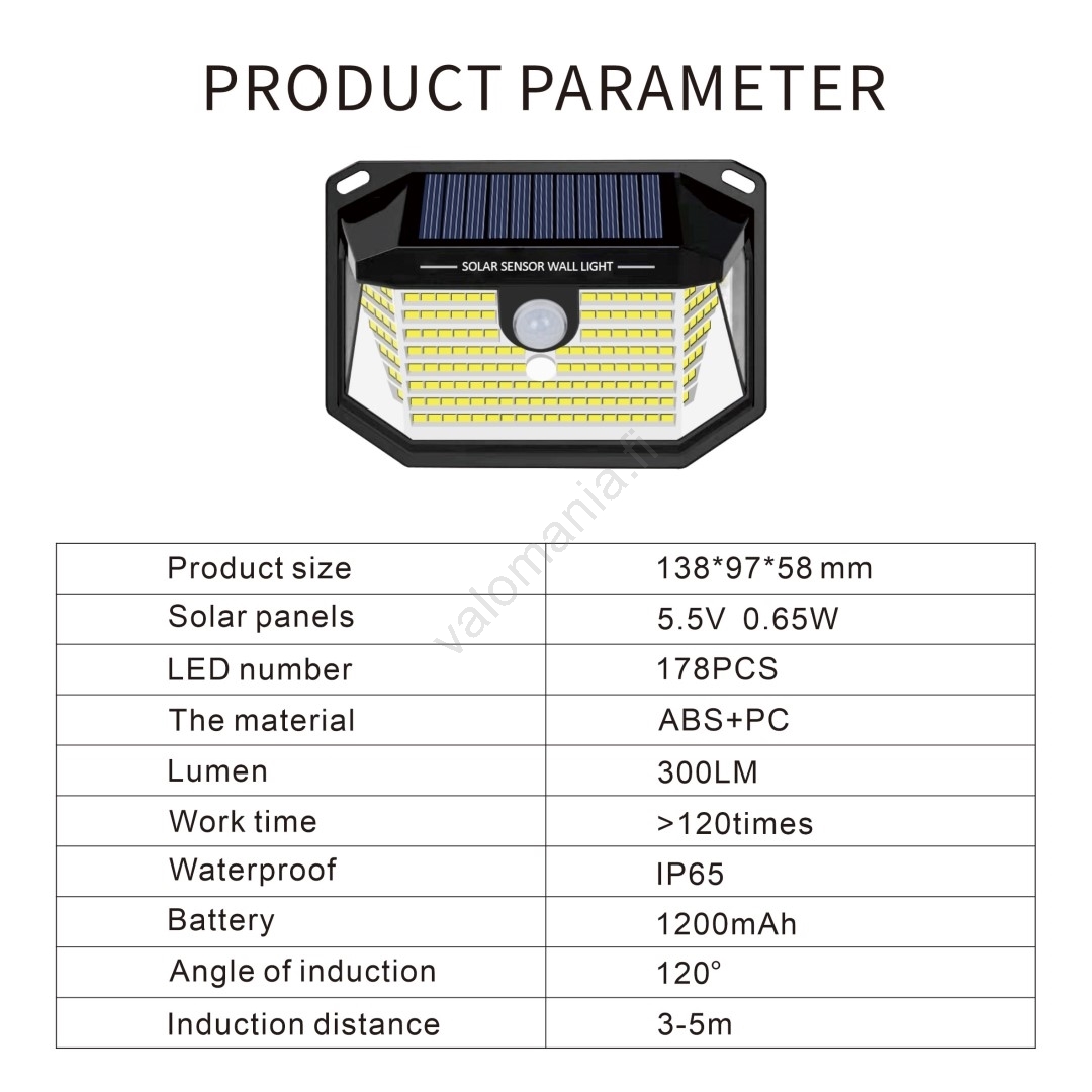 LED aurinkokenno seinävalo anturilla LED/4W/5,5V IP65