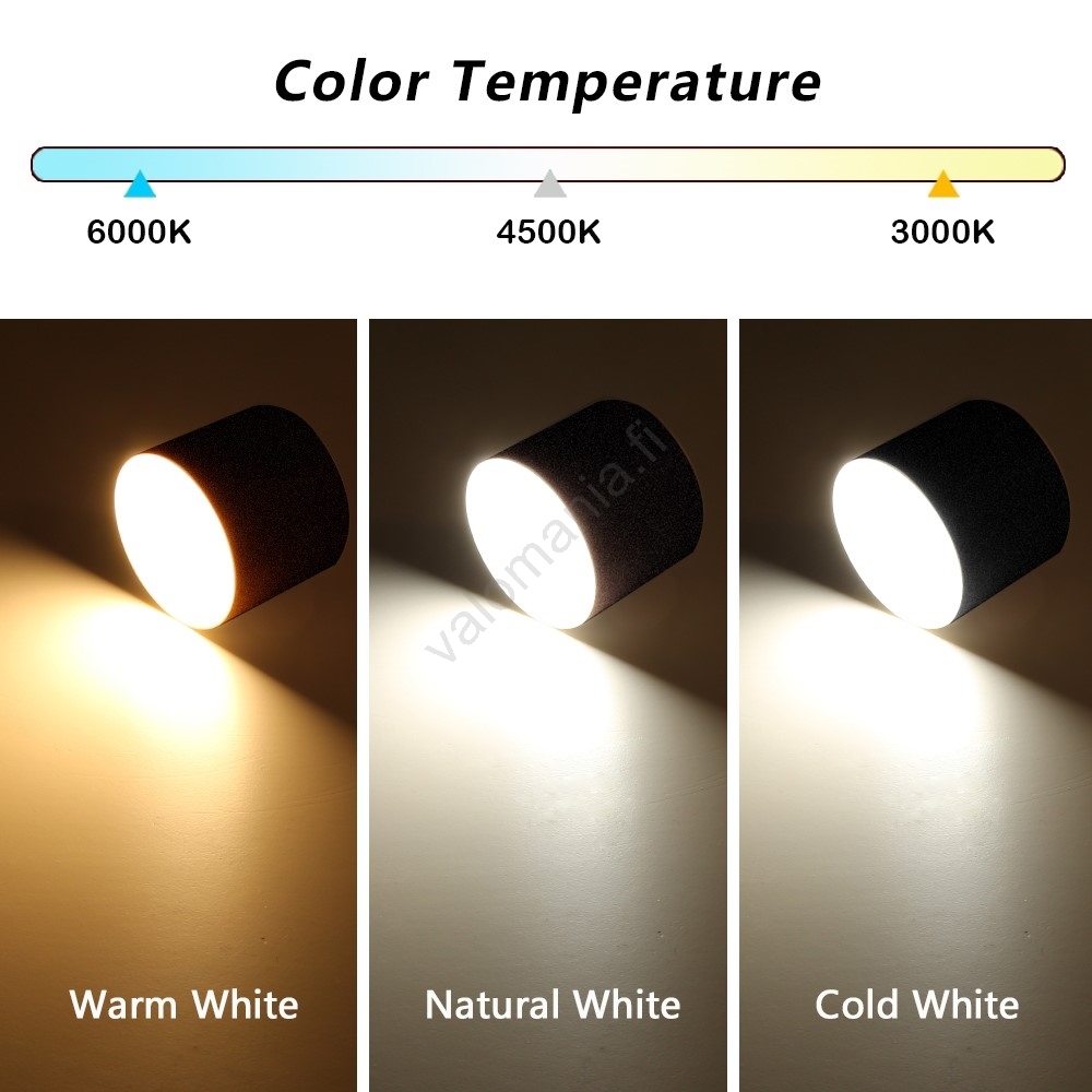 • Valon väriä voi säätää portaattomasti lämpimästä kylmään valkoiseen (2700K-6500K).