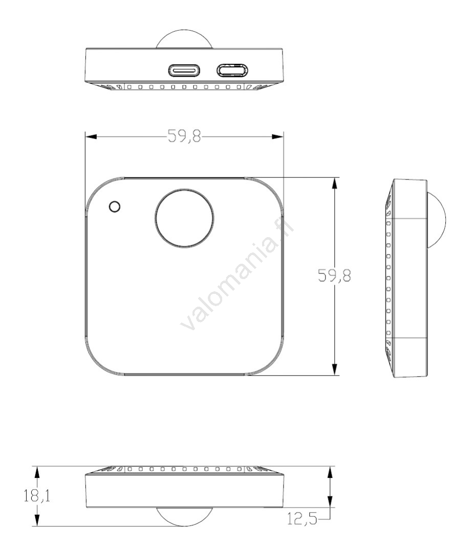 • Sertifikaatit: CE Anturin mitat: 59,8 x 59,8 x 12,5 mm.