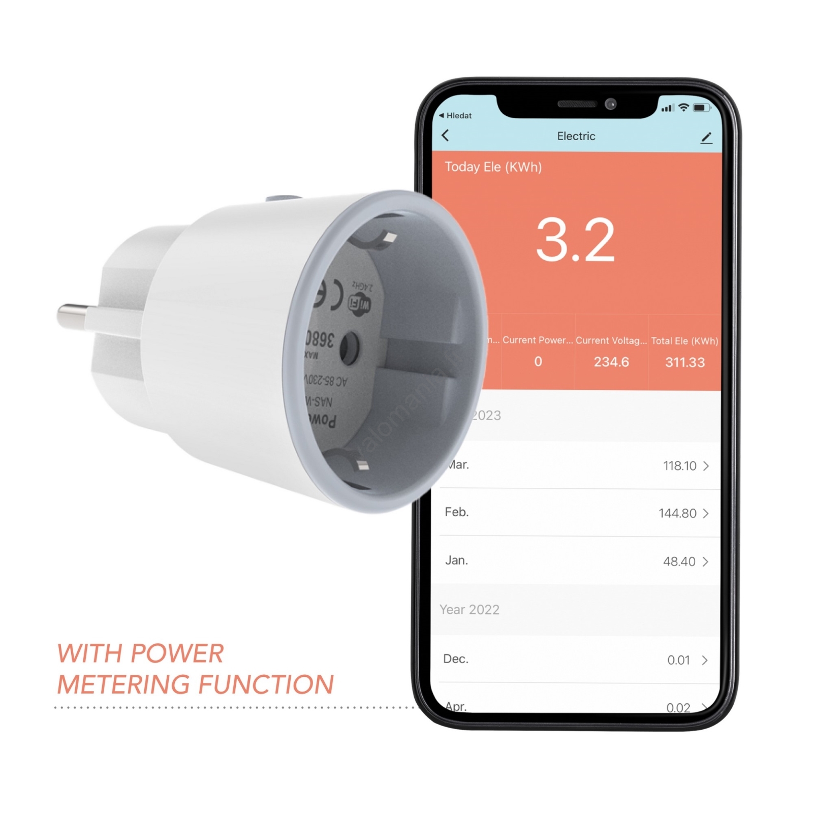 • Sovelluksen toiminnot: ON / OFF, ajastin, kulutuksen mittaus.